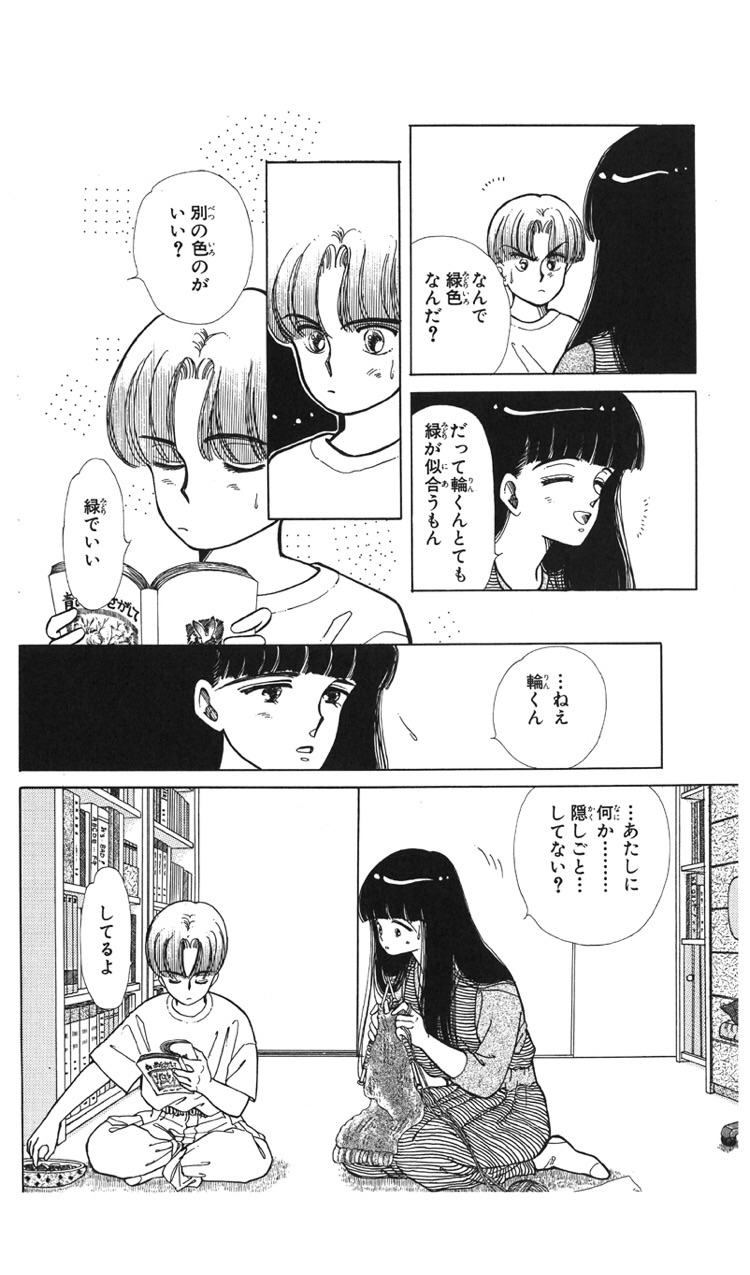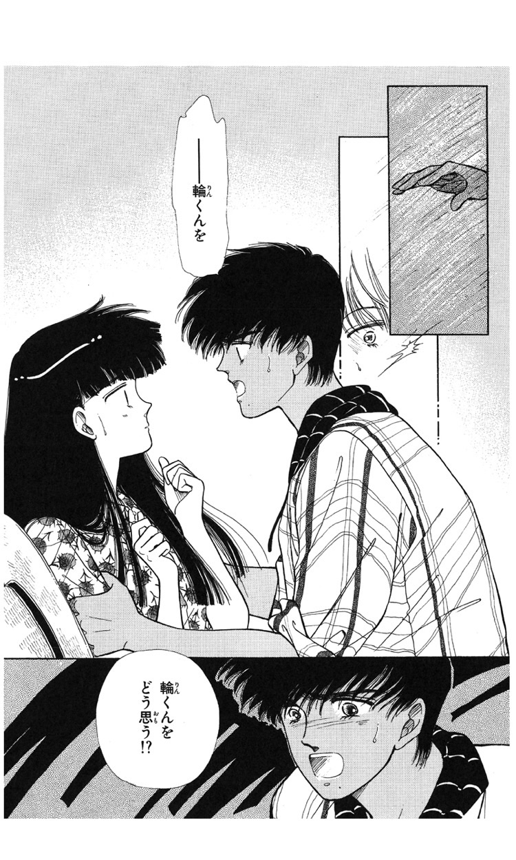 その中で、マンガの紙面で印象強く描写されているのは、顔をあからめたり、寂しさを押し殺す輪の表情です。