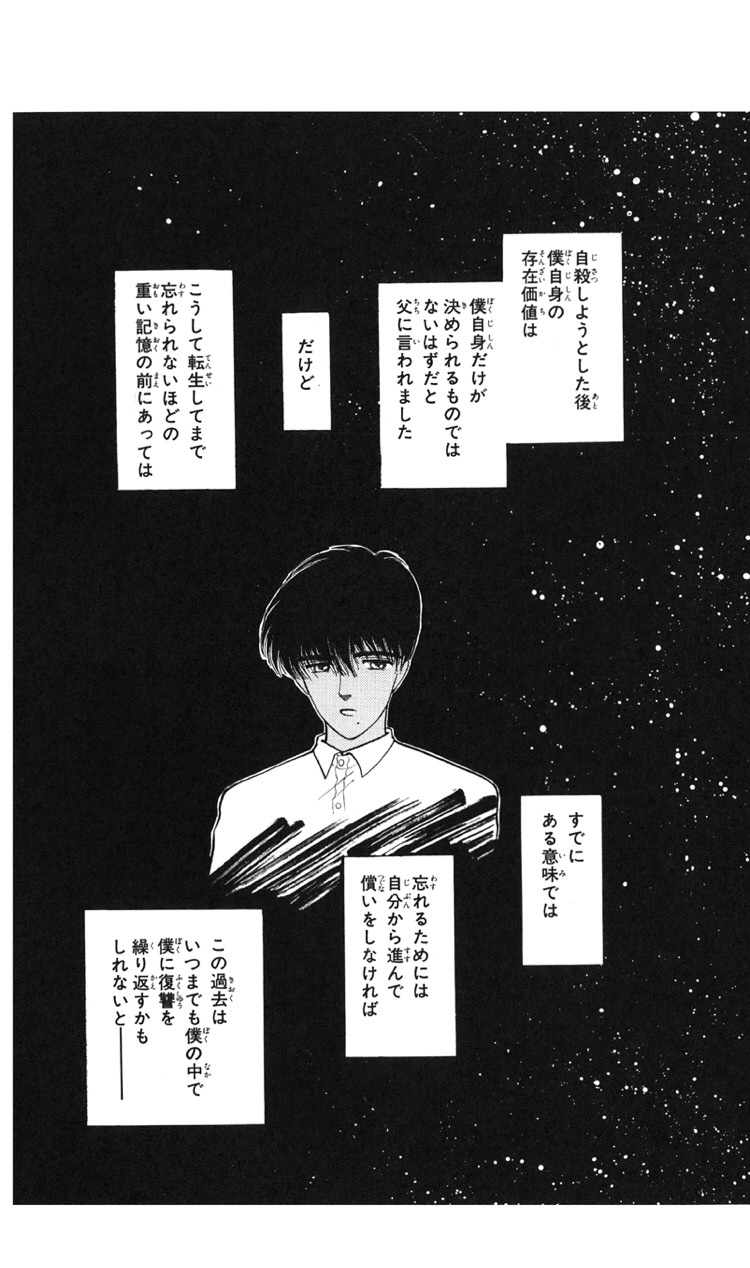 苦しみの中で、輪が自分で自分を追い込んでいく…その哀しさをよく表現している扉絵だと感じます。