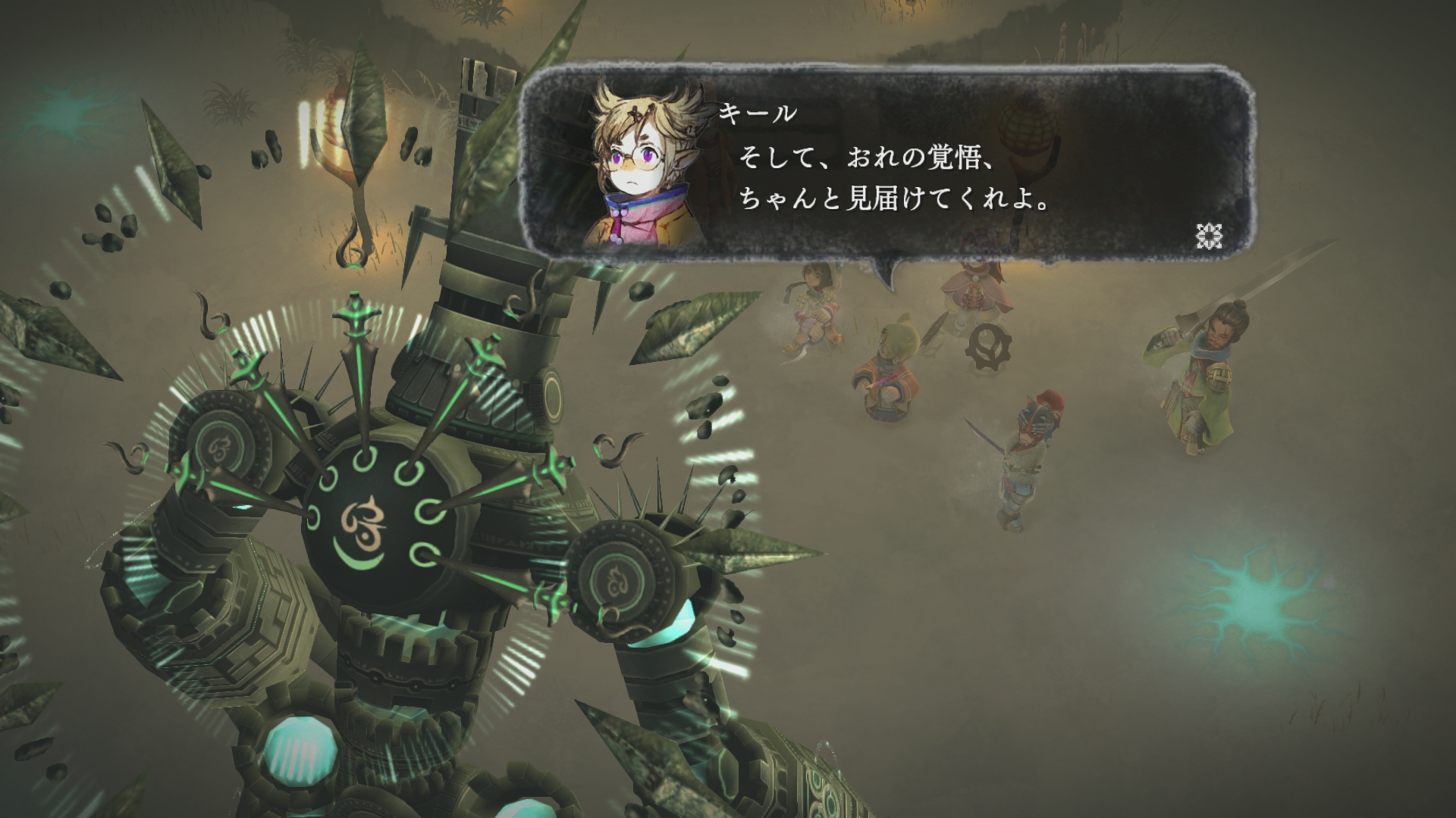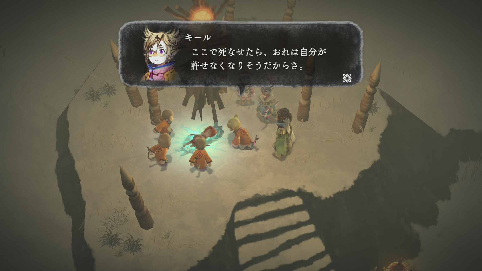 キールが村で、セツナに魔法をかけようとしますが上手くいきません。