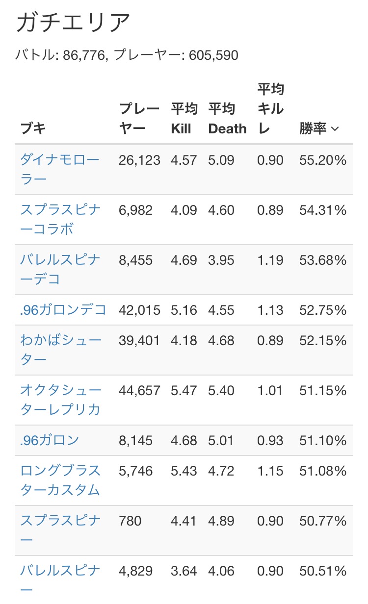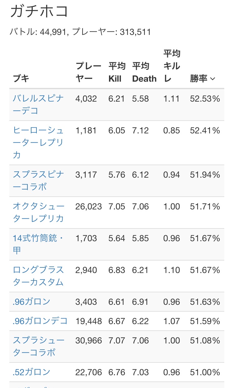 96ガロンデコは、確かに全ブキの中では勝率の良いブキです。