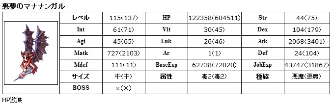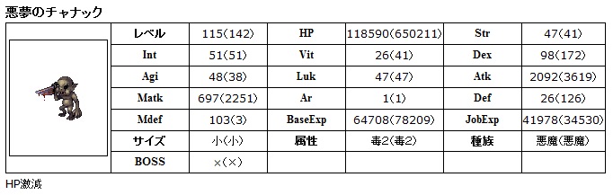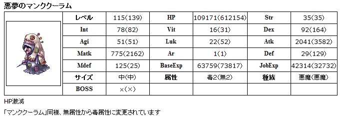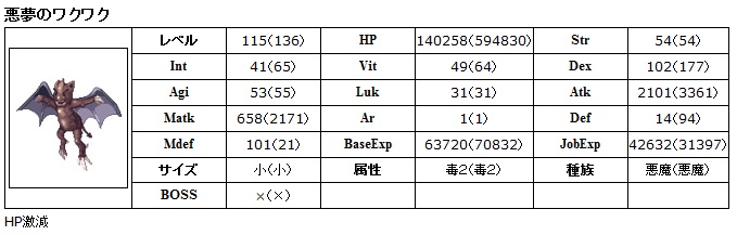 RO(覚醒)メカリックブログ様のモンスターデータ。