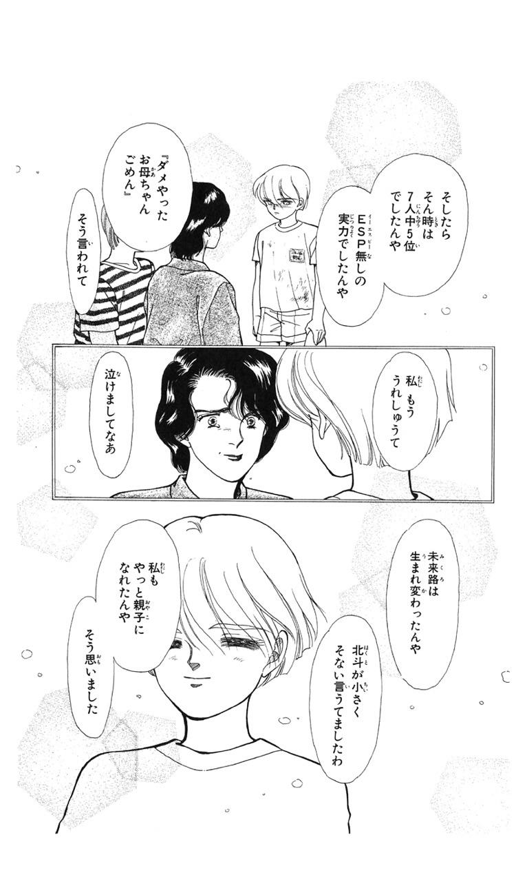 未来路は超能力のせいで実母に捨てられた過去を持っており、過去に苦しむ春彦と輪たちに共感を覚えます。