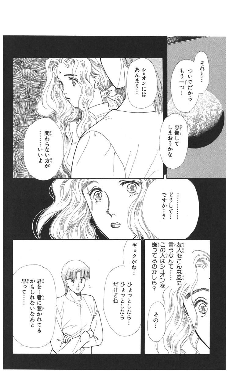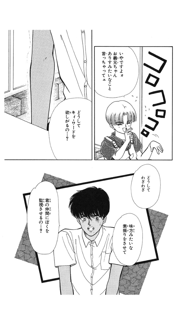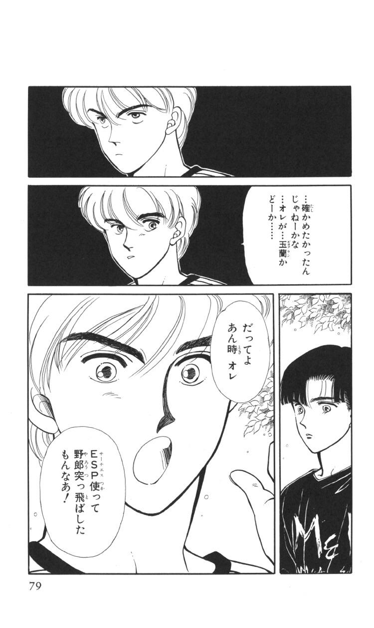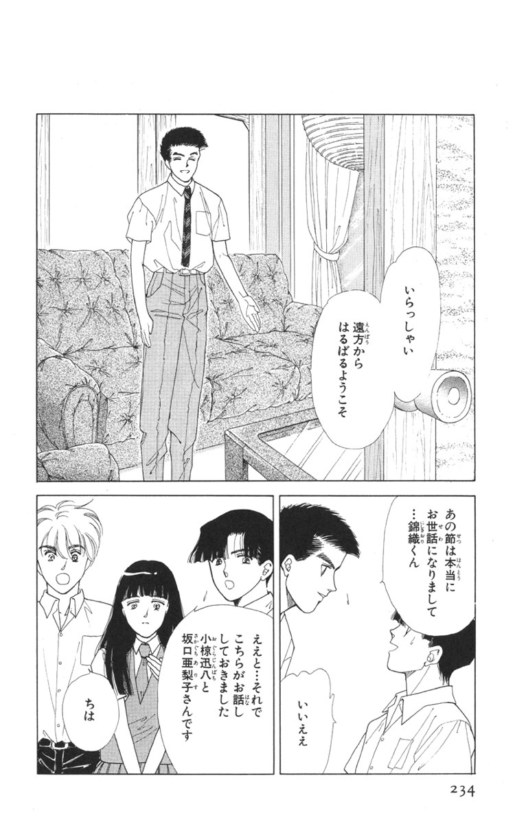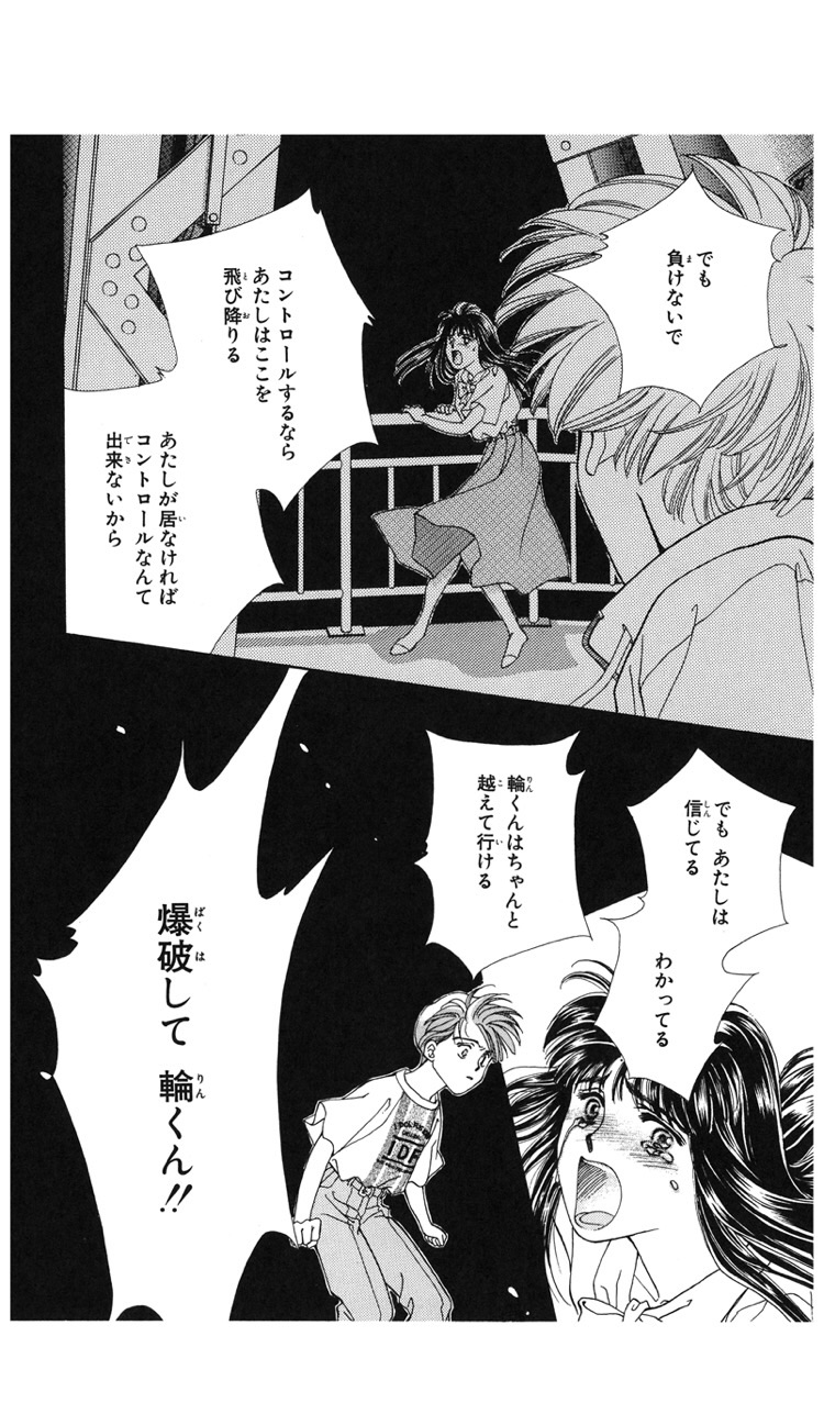 不良から超能力で守ったり、家に度々連絡したり、婚約した輪に嫉妬したり、密会した春彦に嫉妬したり、と迅八の亜梨子への想いは少しずつ育っていきます。