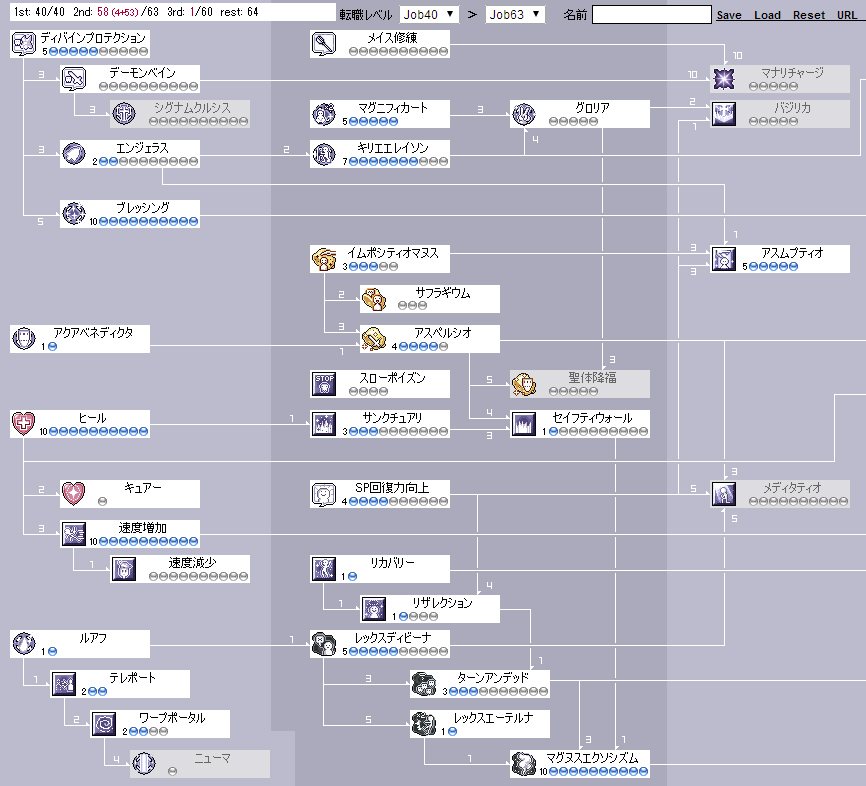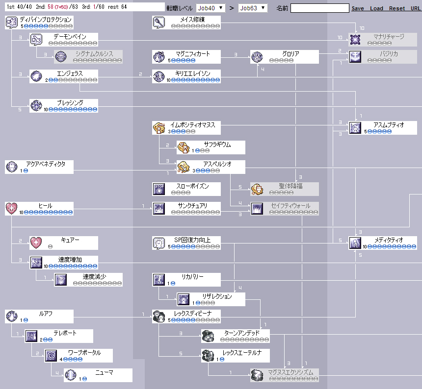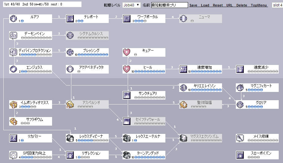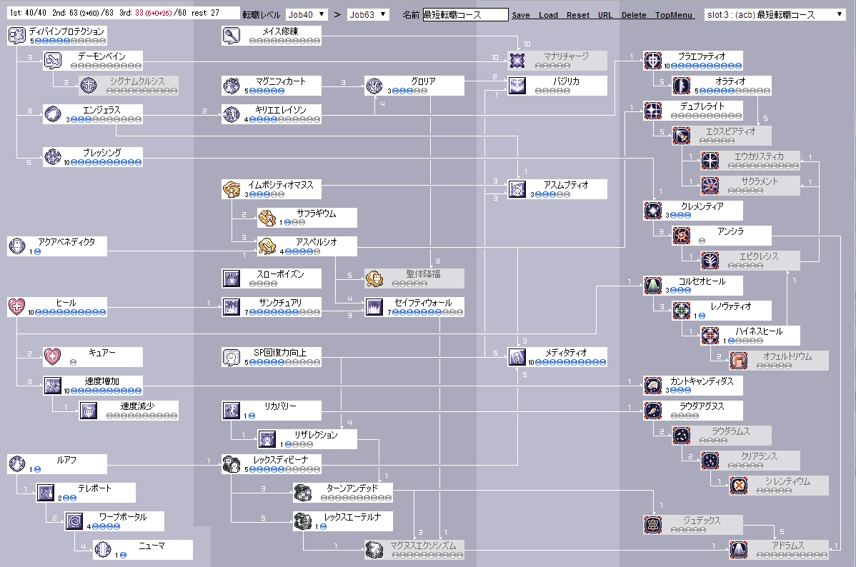 前提は廃アコjob40、廃プリjob63(Base95の平均値らしい)での3次転職です。